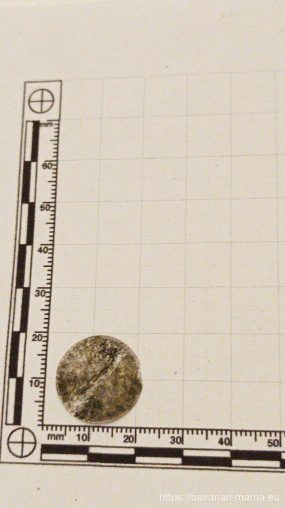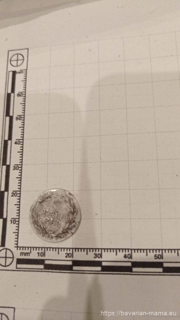 Popsikana sprayem na komary (który niestety nic nie dawał … ) zabrałam się do poszukiwań … Oczywiście standardowo znajdywałam – druty, folię aluminiową, żelazo …. Komary dawały coraz bardziej w kość i nagle dobry sygnał i ….. po dłuższym poszukiwaniu sondą (pipała i pipała a ja nie widziałam dość długo co wskazuje) wreszcie zobaczyłam co znalazłam. Monetę 🙂 Ucieszyłam się bardzo bo ostatnio posucha w znaleziskach. Monetę schowałam do torby bo komary naprawdę nie dawały spokoju i dopiero w domu się dobrze przyjrzałam monecie.