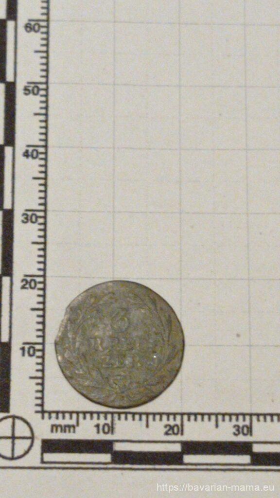 Odcyfrowałam napis 3 Kreuzer czyli 3 Krajcary. Z tyłu udało mi się odcyfrować datę 1818.