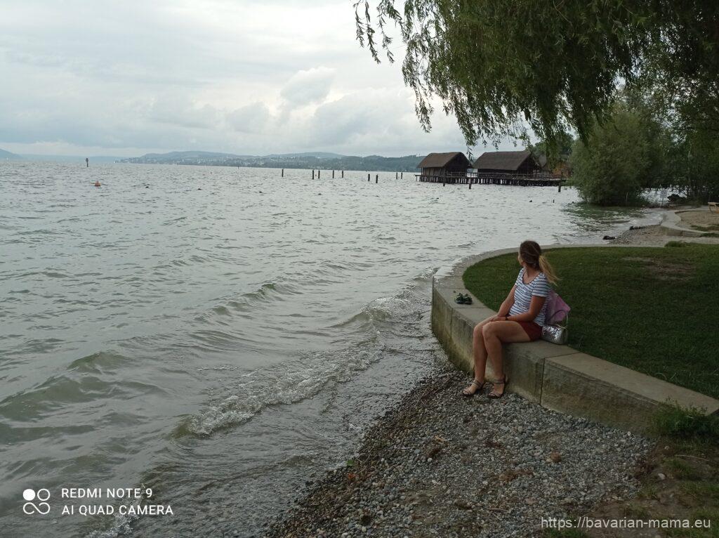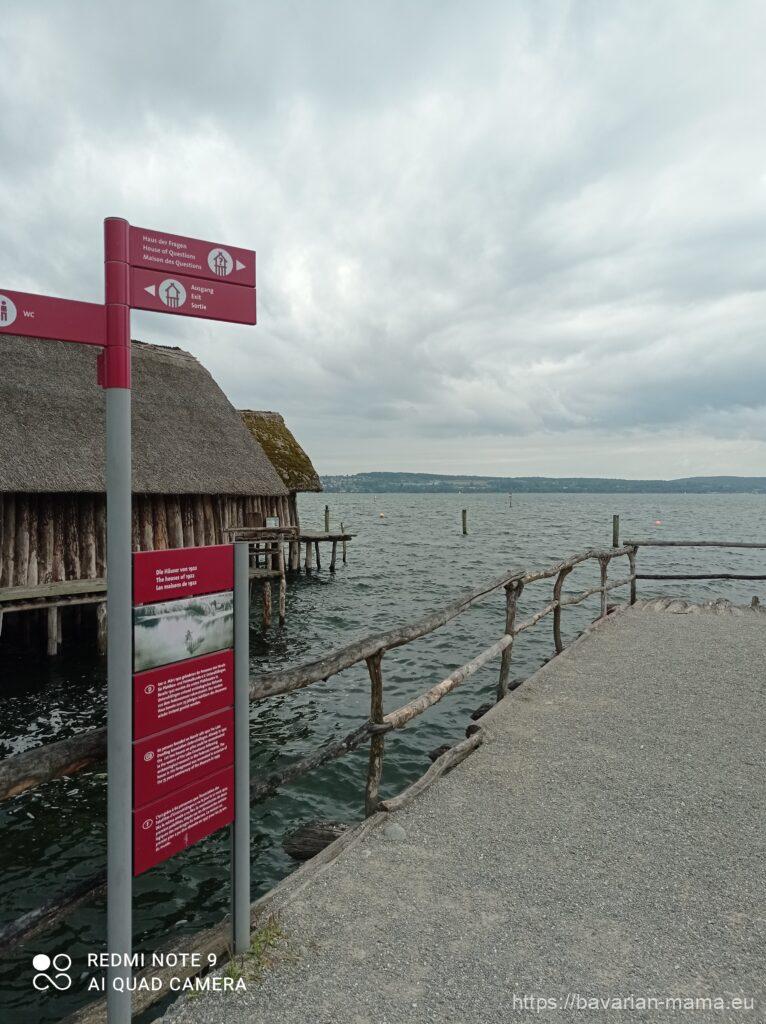 Po obejrzeniu głównie jadowitych węży i jaszczurek, przeszliśmy się spacerem do muzeum Palafitów. Akurat otwierali i bardzo szybko dostaliśmy bilety. Oczywiście w czasie zwiedzania, także na dworze, musieliśmy nosić maski. Muzeum oferowało super widoki na jezioro Bodeńskie. Dla osób, które jednak nie chciałyby wydawać 10 E za wstęp, istnieje możliwość obejrzenia konstrukcji z pobliskiej plaży. Ja jednak interesuję się archeologią i mając możliwość obejrzenia takiego ciekawego muzeum, po prostu musiałam odhaczyć na mojej liście 🙂 Szukajåc detektorem można natrafić także na elementy z brązu, chciałam się więc trochę więcej dowiedzieć o tej epoce.