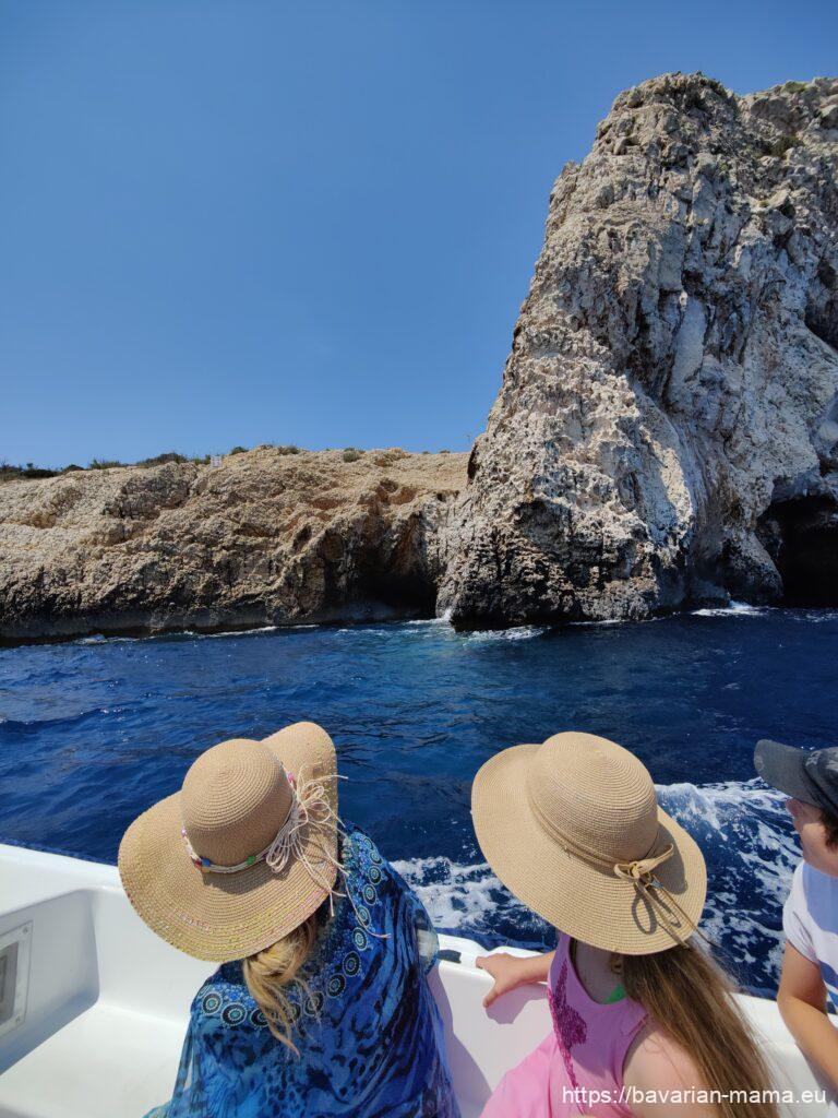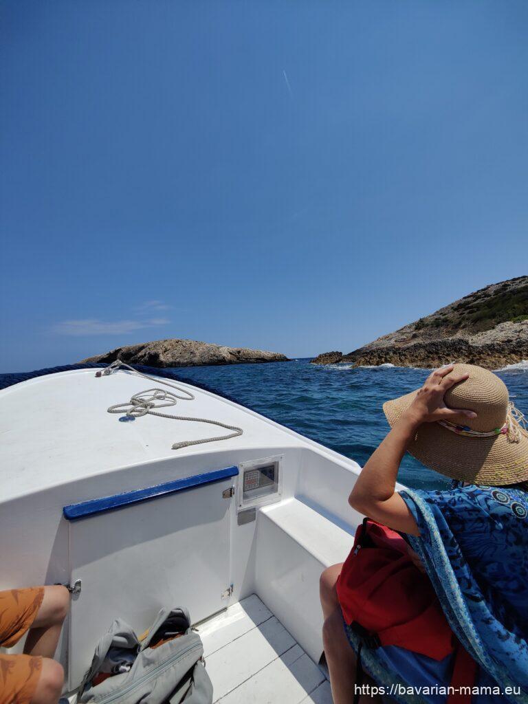 Mielismy niestety troche pecha bo morze bylo troche niespokojne, wialo troche i zrobily sie fale. Lodka plynela szybko, wiec niestety poskakiwalismy na kazdej fali. Nie jestem przyzwyczajona i mniej wiecej w polowie drogi troche mi juz bylo zle:P Za to corka, im wyzej podskakiwalismy, tym bardziej sie cieszyla …