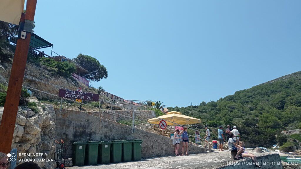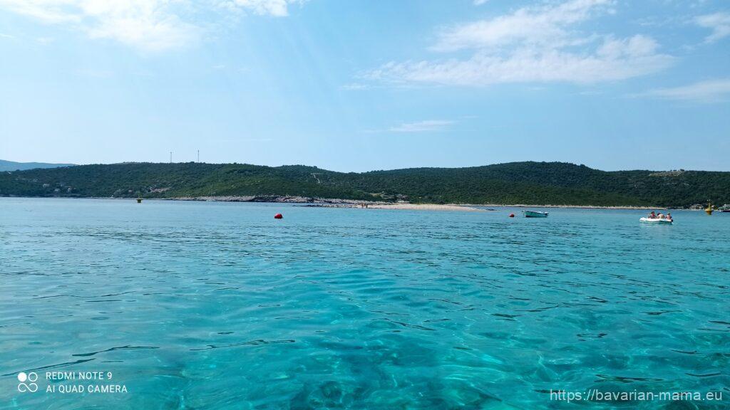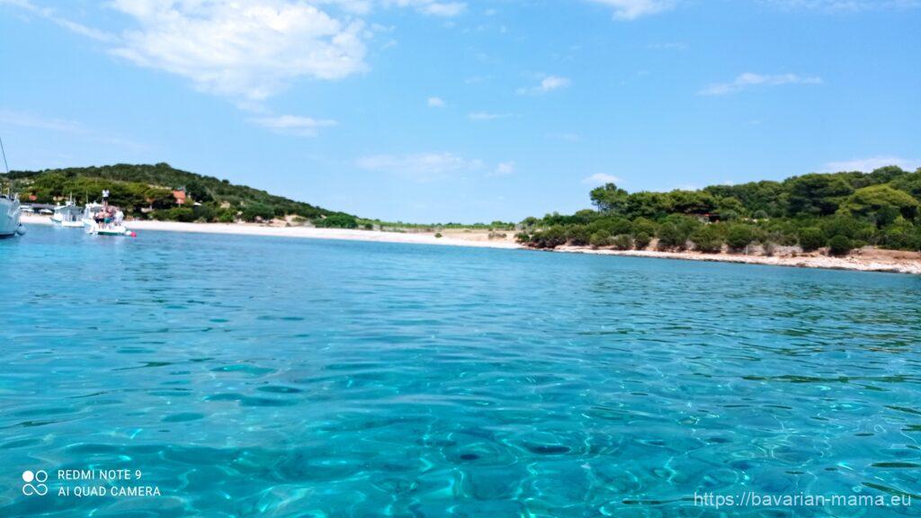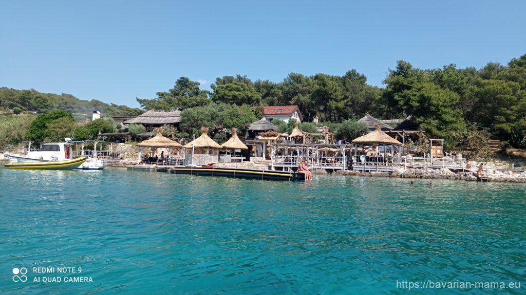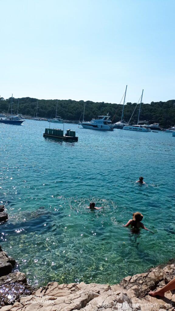 Kolejnym punktem naszej wycieczki byly Pakleni Islands lezace blizej Hvaru a dokladniej poplynelismy do Palmizana Beach. Tutaj nasz przewodnik Ivica pytal na lodce kto chce isc zjesc w restauracji bo musi zrobic rezerwacje. Mysmy mieli jedzenie ze soba wiec spedzilismy okolo godziny na plazy. Ceny w tej restauracji nie nalezaly do najnizszych a i tak z dziecmi ciezko w restauracji bo duzo rzeczy nie jedza:P